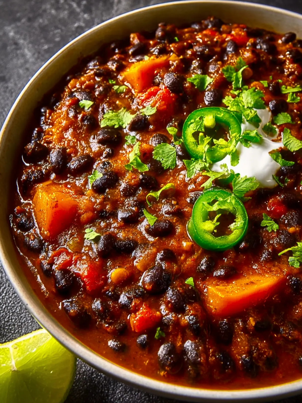A hearty and flavorful vegetarian chili made with butternut squash, black beans, and a blend of spices.