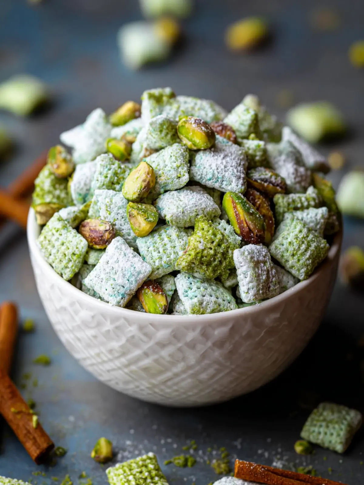 What makes this puppy chow so special is its unique blend of flavors. The nuttiness of ground pistachios pairs beautifully with the sweetness of powdered sugar, creating a delightful balance that keeps you reaching for more.