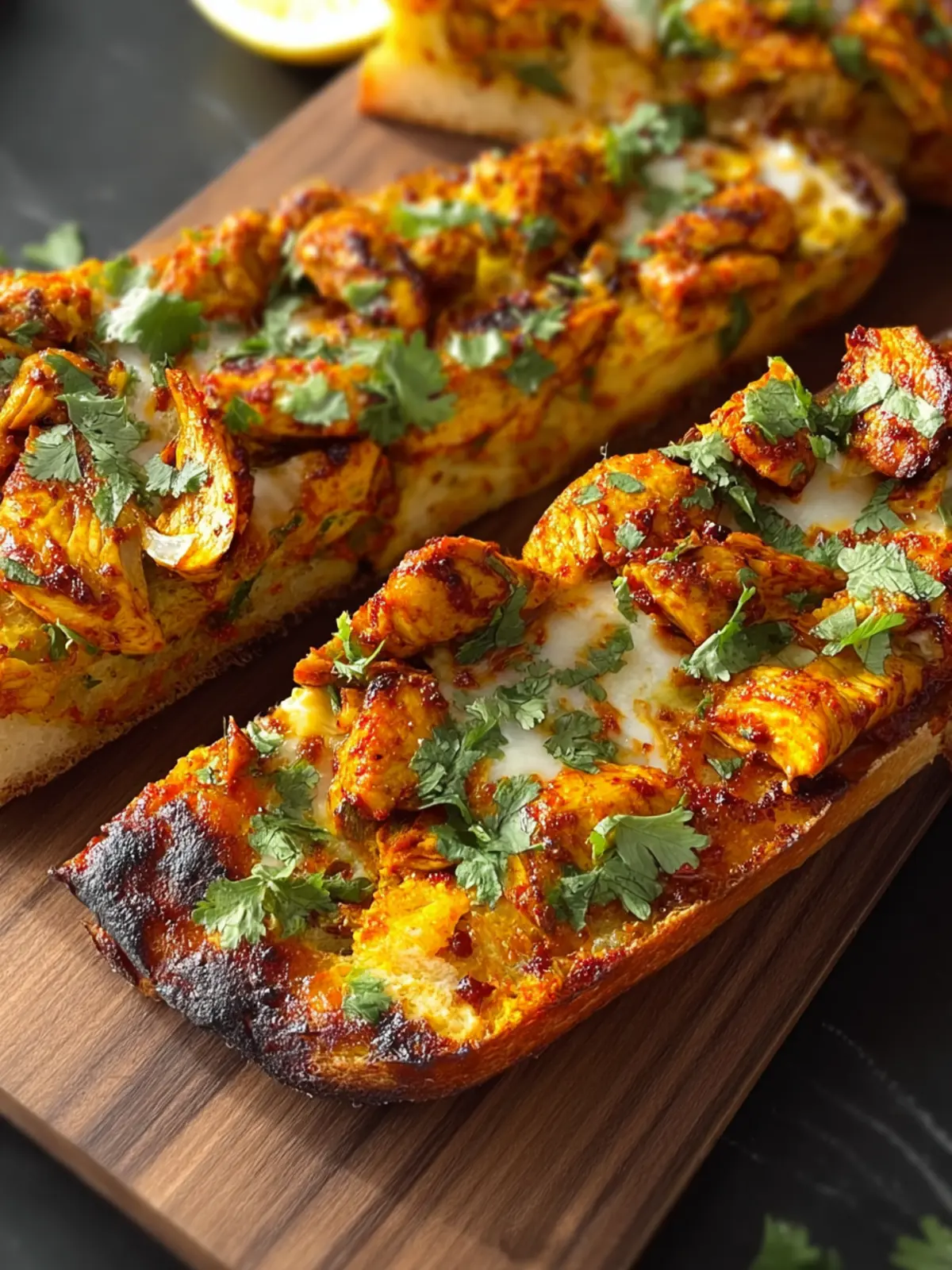 Elevate your tandoori chicken garlic bread by mixing in fresh herbs like cilantro or mint into the garlic butter. These herbs will not only brighten the dish but also offer a refreshing contrast to the smoky tandoori flavors, turning every bite into a burst of freshness.